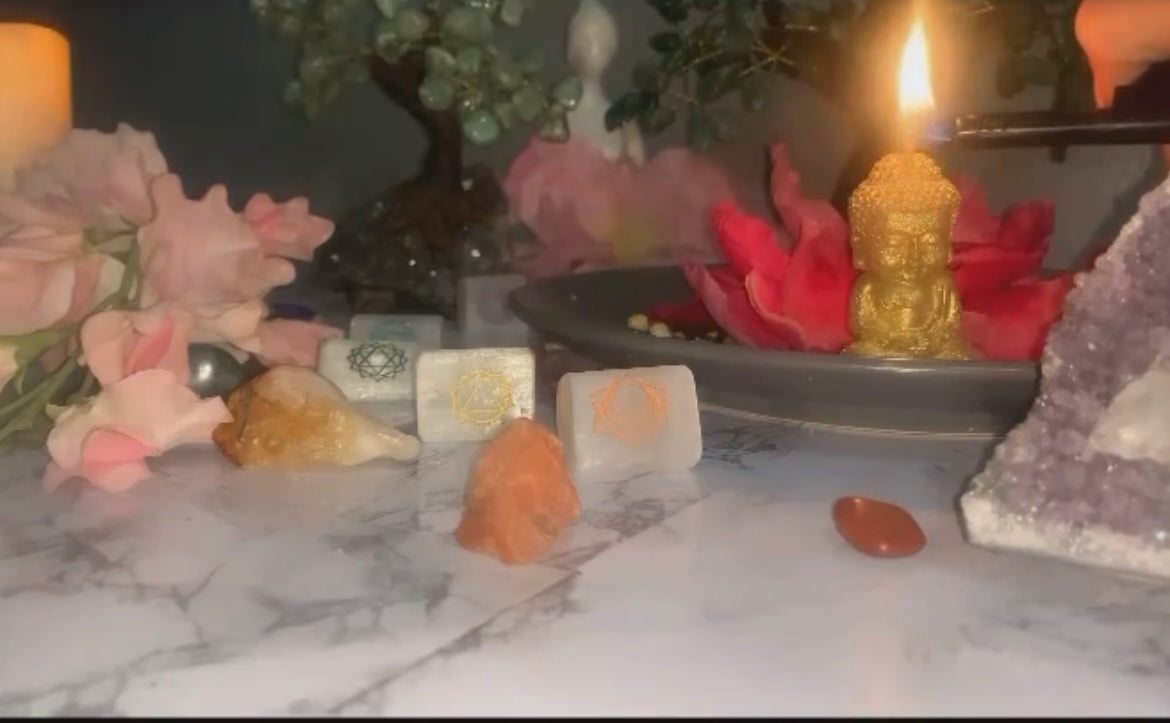 Each candle comes with a carefully selected set of stones, not only to enhance its beauty but also to deepen its spiritual meaning. Every stone carries its own unique energy — such as love, peace, joy, or healing — to help you set powerful intentions and elevate your space with purpose and serenity.